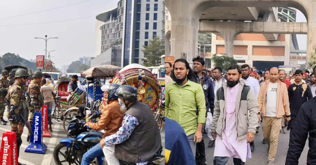 আগারগাঁও, খামারবাড়ি, ফার্মগেট, কৃষি বিশ্ববিদ্যালয় ও পরিকল্পনা কমিশন সংলগ্ন সড়কগুলোতে যান চলাচল সীমিত বা বন্ধ রয়েছে।