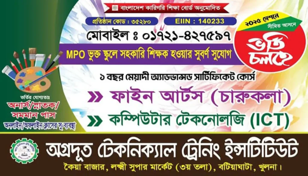 অগ্রদূত টেকনিক্যাল ট্রেনিং ইনস্টিটিউটে বর্তমানে কোন কোর্সে ভর্তি চলছে?