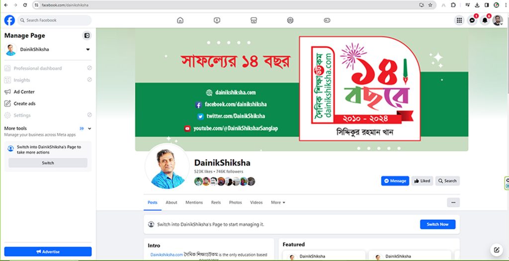 দৈনিক শিক্ষার নামে একাধিক ভুয়া পেজ ও গ্রুপ ফেসবুকে