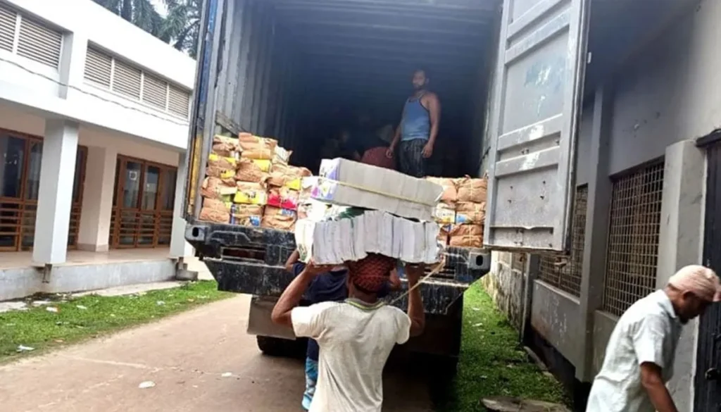 সোমবার (৬ অক্টোবর) দুপুরে ময়মনসিংহের নান্দাইল উপজেলা পরিষদের পুরাতন হলরুমের সামনে দেখা যায়, একটি কার্গো ট্রাক দাঁড়িয়ে আছে। শ্রমিকরা হলরুম থেকে বই মাথায় করে এনে ট্রাকে তুলছেন। পাশে বসে বই বিক্রির হিসাব নিচ্ছেন সহকারী শিক্ষা কর্মকর্তা (এটিও) হাফিজুর রহমান। তবে কোনো মিটার স্কেল বা ওজন পরিমাপক যন্ত্র ছাড়াই প্রতি বান্ডেল বই ১২ কেজি হিসেবে গাড়িতে তোলা হচ্ছে।