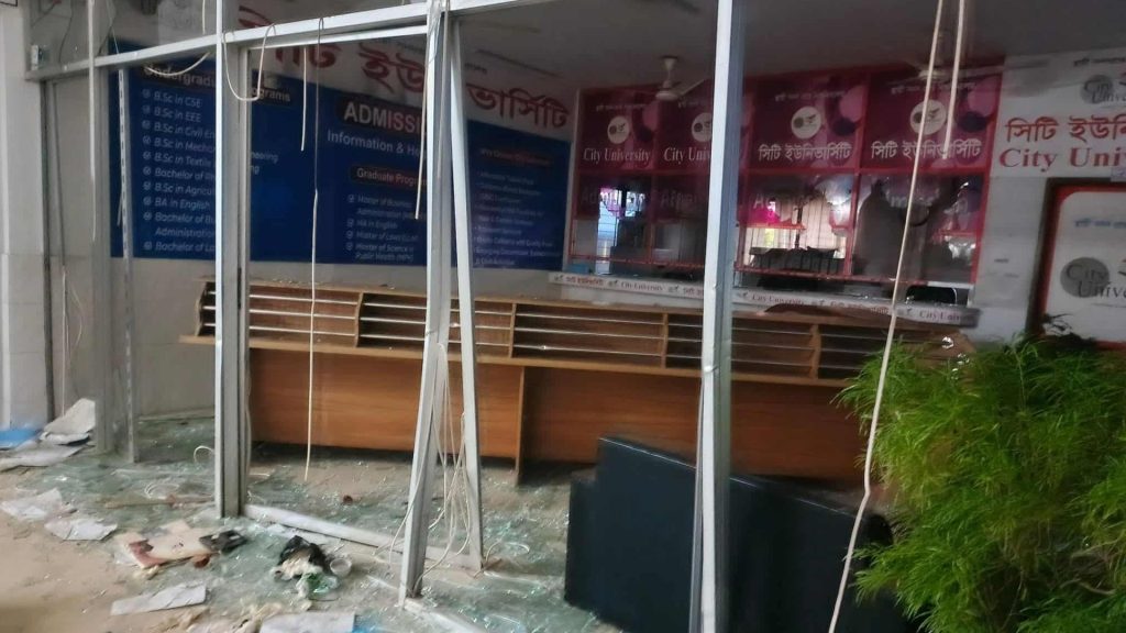 রাত ৯টা থেকে শুরু হওয়া সংঘর্ষ চলে সোমবার ভোর সাড়ে ৪টা পর্যন্ত। এ সময় সিটি ইউনিভার্সিটির ক্যাম্পাসে ব্যাপক ভাঙচুর ও অগ্নিকাণ্ডের ফলে প্রতিষ্ঠানটি ধ্বংসস্তূপে পরিণত হয়। পাশাপাশি, সংঘর্ষের সময় লুটপাটের ঘটনাও ঘটে।