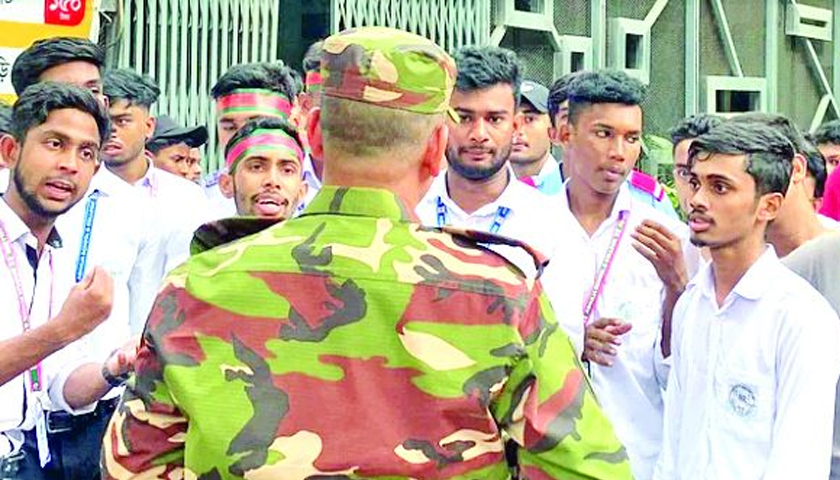 বিক্ষোভের সময় শিক্ষার্থীরা ৫ নম্বর গেটের সামনে জড়ো হয়ে প্রতিবাদ জানাচ্ছিল, যা নিরাপত্তা বাহিনীর সঙ্গে উত্তেজনা তৈরি করে।