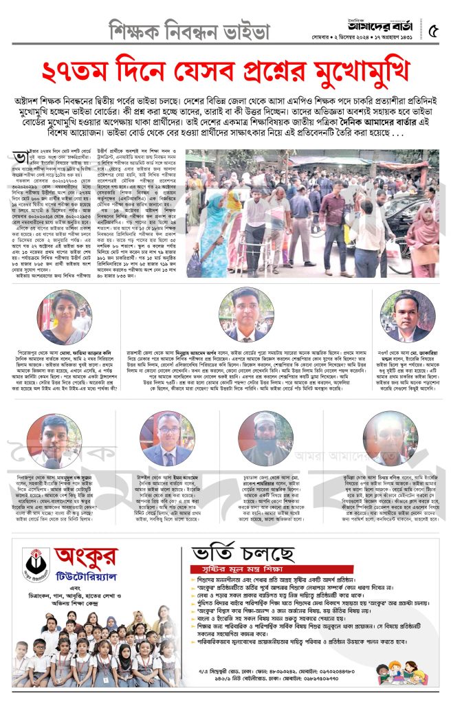 শিক্ষক নিবন্ধন ভাইভা: ২৭ তম দিনে যেসব প্রশ্নের সম্মুখীন হতে হবে