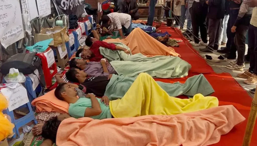 উত্তর: আন্দোলনকারী শিক্ষার্থী মেহেদি হাসান বলেন, “সরকারের খামখেয়ালিপনা আমাদের রাজপথে নামতে বাধ্য করেছে,” এবং তারা দাবি আদায়ে আরও কঠোর আন্দোলন করবে।