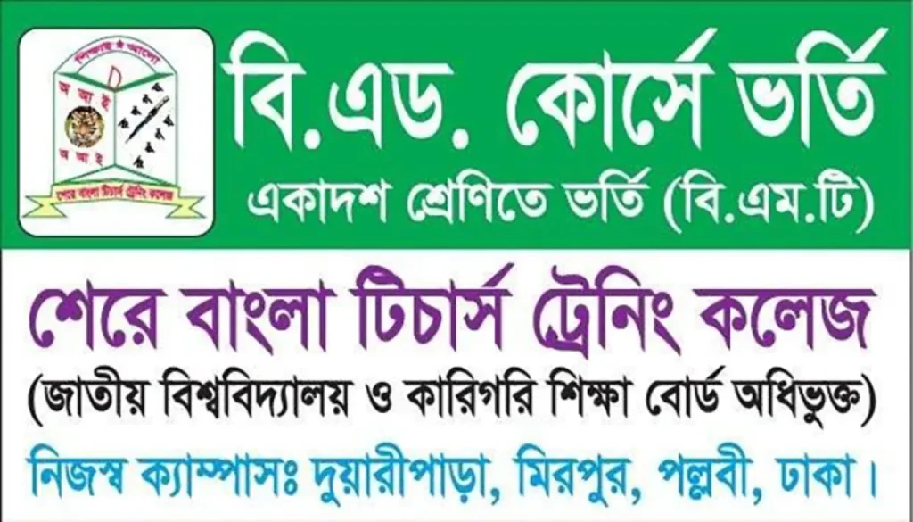 শেরে বাংলা টিচার্স টেনিং কলেজে বিএড কোর্সে ভর্তি চলছে